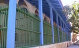 Ανάμεσα στους πεσσούς υπάρχει ψηλό ξύλινο κιγκλίδωμα, που αποτελείται από πυκνά κατακόρυφα ξύλινα στοιχεία τετραγωνικής διατομής που καταλήγουν σε οξείες άκρες και τα διαπερνούν τρεις οριζόντιες τραβέρσες. Το κεντρικό άνοιγμα κλείνει ψηλή πόρτα όμοιας μορφής με το κιγκλίδωμα. Οι άλλες δύο πόρτες, που δεν σώζονται ήταν της ίδιας μορφής, αλλά κοντύτερες όπως διακρίνεται σε παλιές φωτογραφίες.