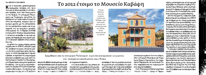 ΕΛΕΥΘΕΡΟΤΥΠΙΑ"Το 2012 έτοιμο το Μουσείο Καβάφη"